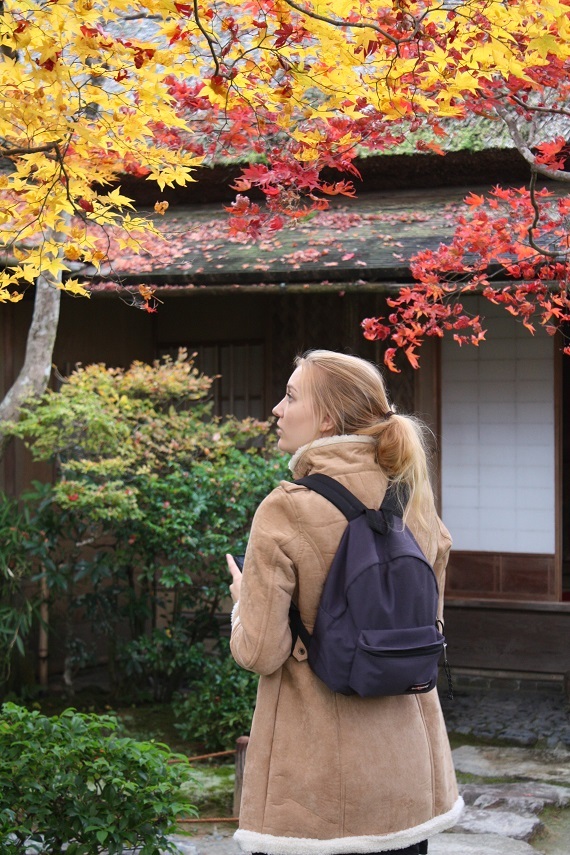 金髪美女のエリーちゃんと一緒に大内山荘の紅葉を愛でる至福の時