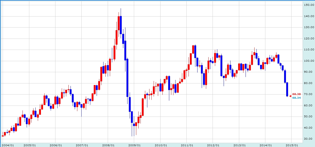 ここ最近の原油安は凄まじいものがありますね。ここ1ヵ月で20%近くも暴落中だとか(;'∀')ヤススギ… まぁこれにはアメリカのシェールガス革命の影響が大きいですが、今後の日本のインフレ率にも関わってきそうなだけに注目しておきたいところでしょうか。
