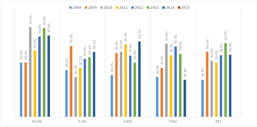 私の結果として、今年は木曜日がほんとダメでした。。。