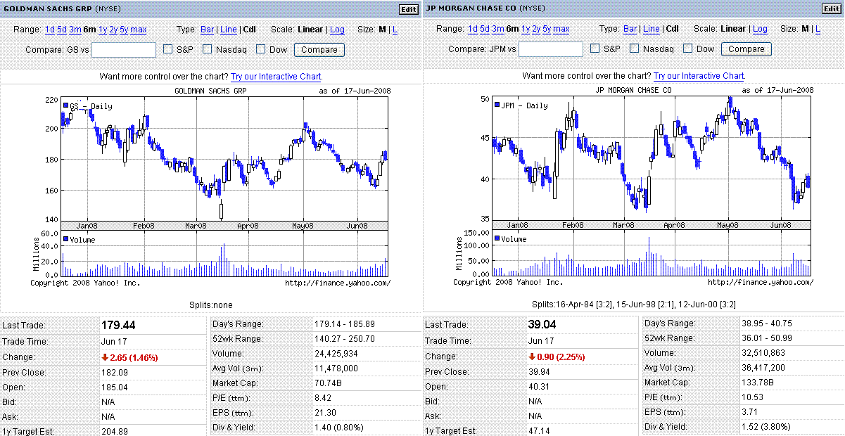 GSの決算が市場予想を上回ったことから全体的に反発して始まりましたが、GSが、米銀が今後さらに650億ドルの増資が必要になるとのレポートを出したため、金融株が大きく売られ米株価指数も下げました。