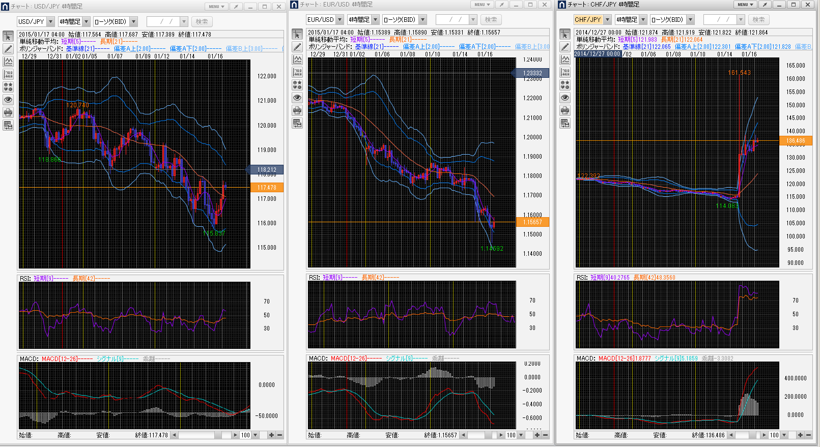 (スイスフランの上限撤廃は予想外でしたが1.20ライントレードは結構やってる人が多かったので被害でてる人もいたかなと。←以前から気にしていたニュースではあったんですが、