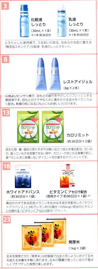 写真のカタログの25品目+社会福祉法人『訪問の家』(横浜市栄区)への寄付の計26品目の中から好きな組み合わせで4品目を選び、申し込み葉書を返送することで後日商品が送られてきます。