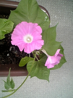 朝起きたら我が家のアサガオが2輪も咲いているではありませんか。