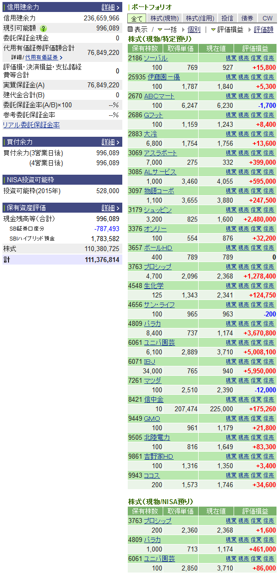2842円→2368円と大きく落ちて,-150万円ほど下がった。