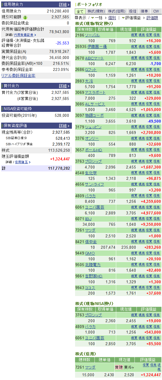 他の証券口座で若干の損失がでていたので,SBI証券の黒字を