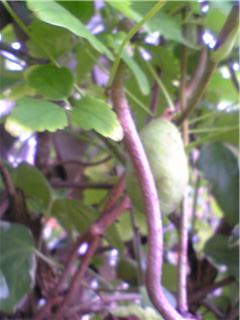 ミツバアケビの実が大きくなりました。もうちょっとで成長が止まり、10月下旬に収穫です。この種類はあまり口をあけないので鳥に食べられずに済みます。本当に美味しいのはこちらでしょう。イツツバアケビは口が開き美味しそうですが、乾燥しやすく管理は難しいです。虫や鳥に食べられます。市場で売っているのは後者のほうです。見栄えはいいです。