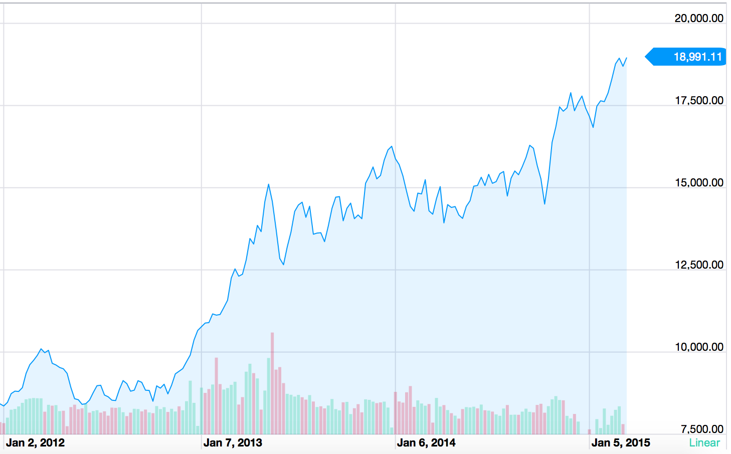 円安、ユーロ安も来てますが、株高も同時に来ちゃってますね。今日の日経平均株価は14年11ヶ月ぶりに19,000円台に突入するなど、今年に入ってからも大きく上昇していますヾ(*´∀`*)ノウマウマ