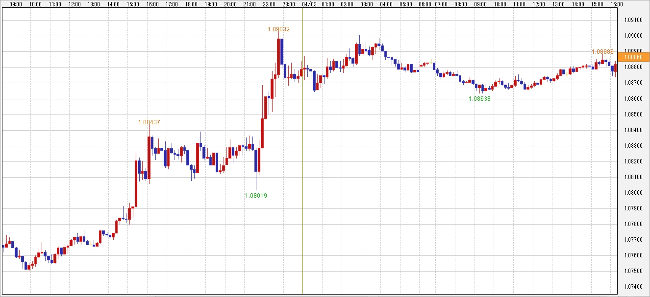 やはり、というかなんというか、昨日の記事でも書いたように、欧州勢が手仕舞う動きが目立ってユーロ・ドルでは特に相場が巻き戻されてしまいました(´・ω・`)ショボーン