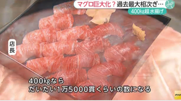 店長は「すし店を30年やっているけど、こんないいマグロ見たことないですね。400kgなら、だいたい1万5,000貫くらいの数になる」と話した。