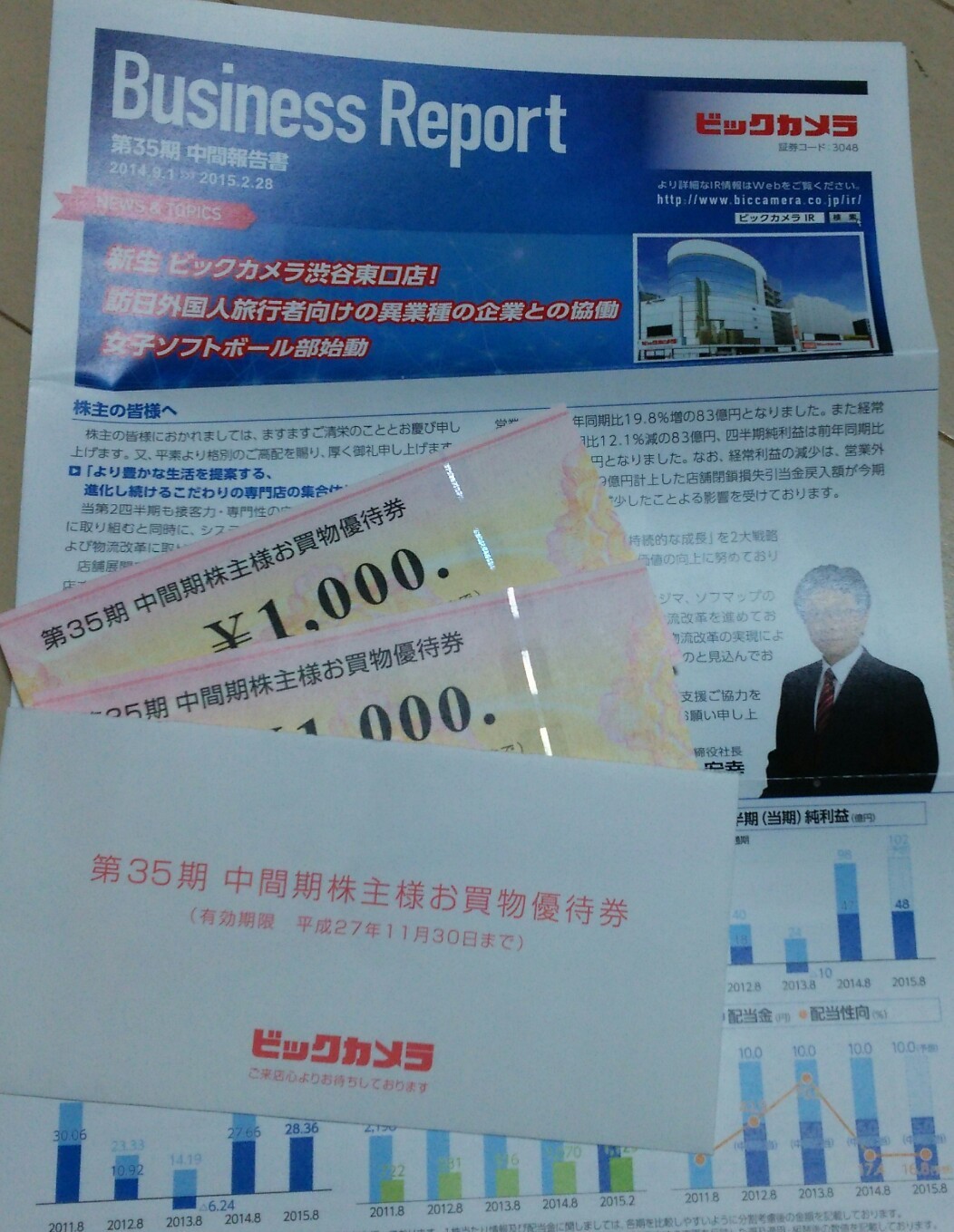 優待券が到着~(* ̄∇ ̄)ノ