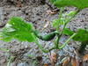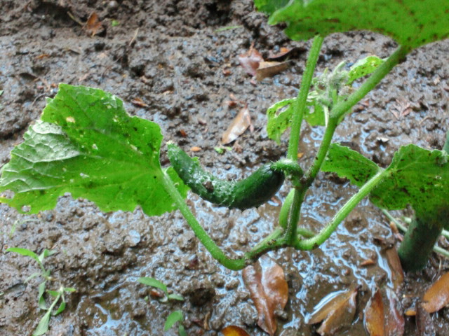 お庭に植えたキュウリに花が咲き、真夏のような日差しを受け、小さな実を結びました。どんどん大きくなることを期待してます。