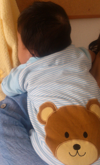 ↑立て抱っこがお気に入りの鉄砲長Jr.の後ろ姿