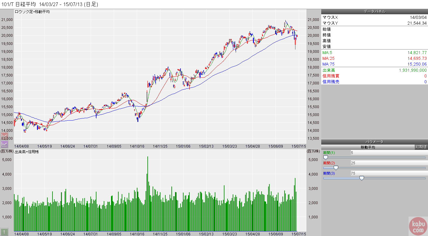6月後半に入り、日経平均株価は続伸している。ヨーロッパで渦巻いていたギリシャの債務問題への楽観的な見方が広がった影響を受け、2000年のITバブル時を越えて、18年ぶりに終値で2万0863円の高値となった。