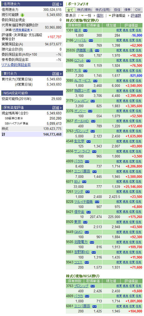 先週,信用で持っていた 2121/7261 は共に手放し。
