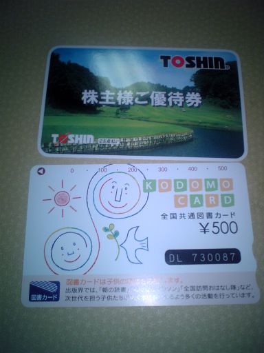っと言う内容です、株主優待券は名古屋地区に住んでいる方なら少しは有効活用できそうですが、私の場合は事実上は図書カードしか活用の道が無いっすね(^^;)
