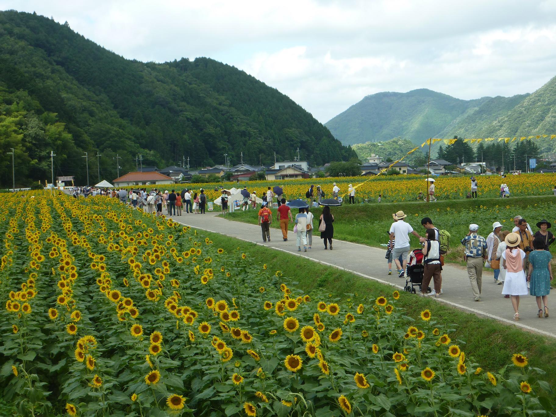 見渡す限りのひまわり畑の中をゆっくり歩くと、幸せの黄色…、