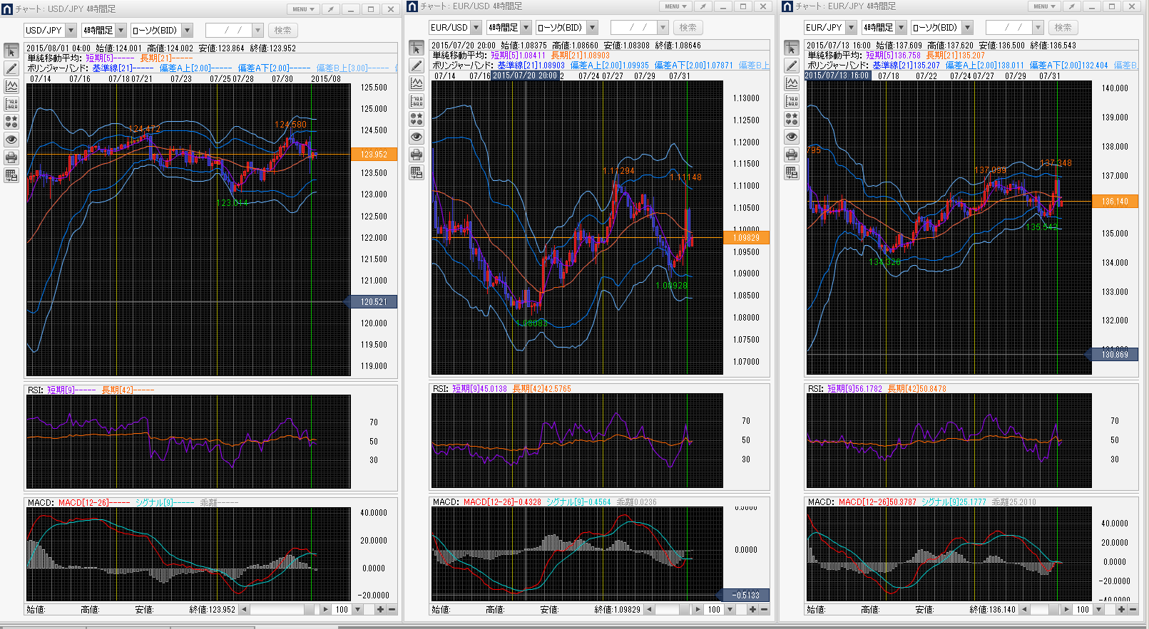 [SHORT-売り]:ユーロ/円(-)、ユーロ/㌦(-)、㌦/円(IN)