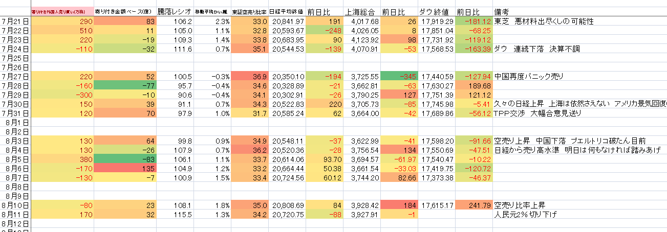 あすはGDからの上昇というのが 普通の予想ですが、お盆ですから、単純にはいかないと思っています。つまり、買い上げて踏みあげるべき人たちが休んじゃってる。www