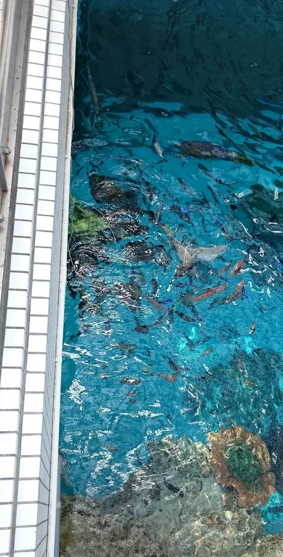 水族館も大変。アジやサバの仲間みたいなのがいっぱい寄ってきた。