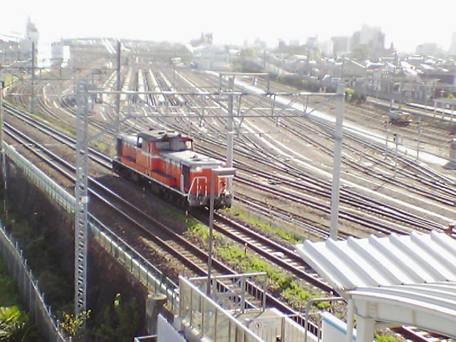 改札口付近から撮影したディーゼル機関車