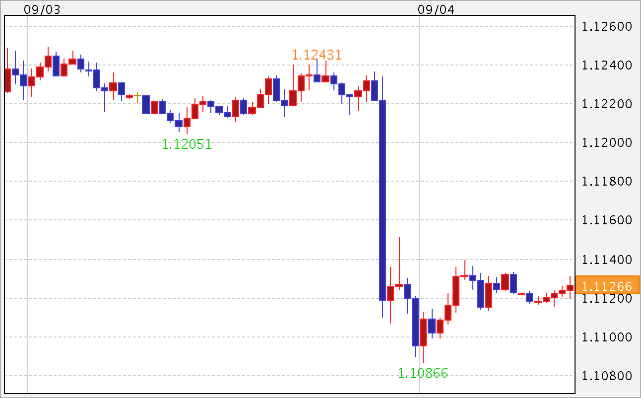 海外市場は、1ドル=119.60〜120.40円台で軟調な推移。欧州市場では、ジワジワと押し下げられながらECB待ち。NY市場では、ドラギECB総裁がさらなる緩和を示唆したことでユーロ売りへ傾きました。その中で前述した通りドル売りへ。その後、(米)8月ISM非製造業景況指数が予想を上回ったことで反発するものの、NYダウが冴えない動きの中では上値は望めず。