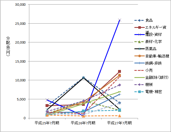 先日、ヒマだったもんでETFの分配金について少し調べてみました。以前に分配金狙いでNEXT FUNDS医薬品(1621)なんてのを買ったことがあるのですが、前回(平成26年7月期)は分配金が10,670円(10口あたり)だったのに、今回は2,320円(同)と激減![]()