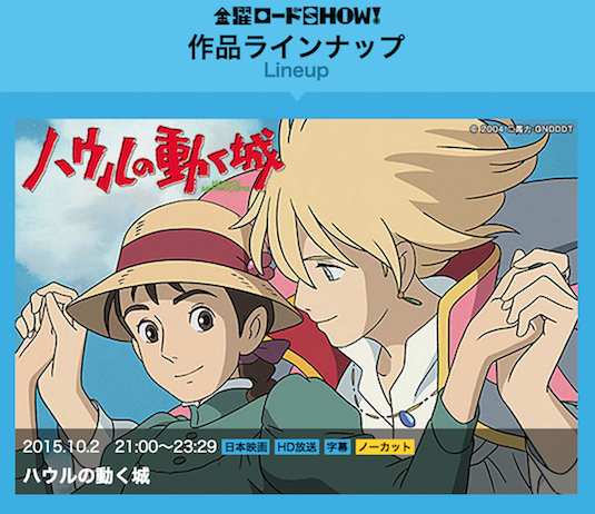 そして、タイトルにもありますように、今日の金曜ロードShow!では「ハウルの動く城」が放映されます。まぁつまり、ジブリの日なわけですね∑(´゚ω゚`;)ヤバッ