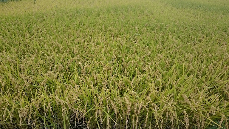 写真は、Jr.と散歩中に山形の「つや姫」の生産現場を通りかかったので、稲穂を