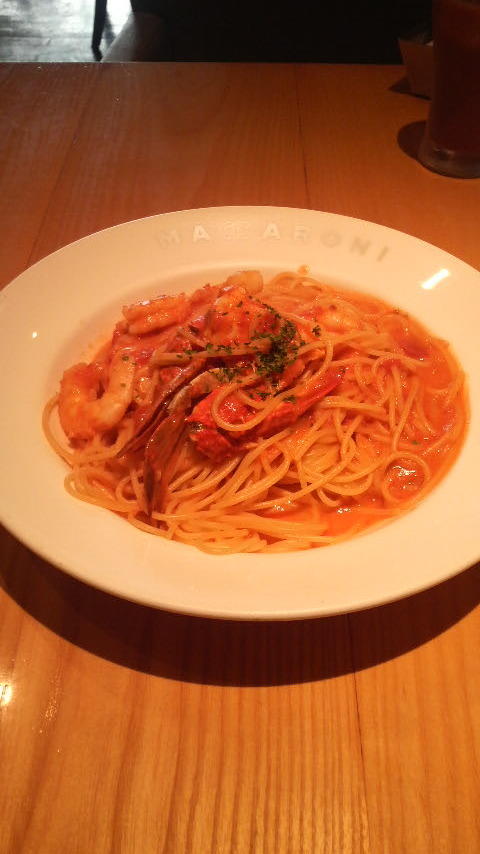 名古屋駅のパスタ店にて。この料理は、某フレンズさまの日記にお邪魔して紹介したくらい、何しろ拙者お薦め。渡り蟹から良いダシが出て、トマトクリームソースとの相性バッチリ。海老もプリプリの食感で、大いに楽しめまする。