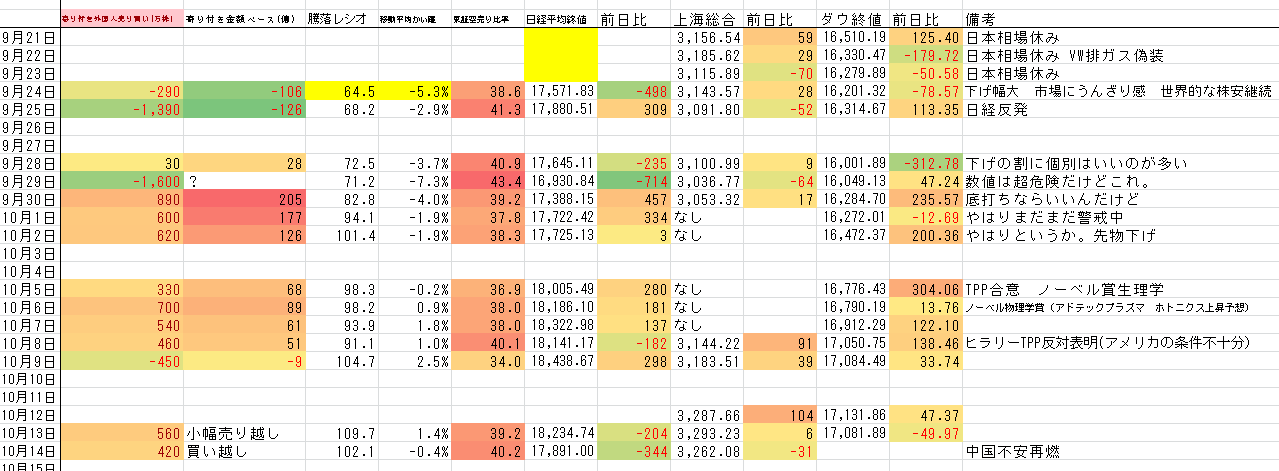 10月相場に期待していた一人ですが、、上にも下にも行き過ぎる日経には参ります(__,)/~~