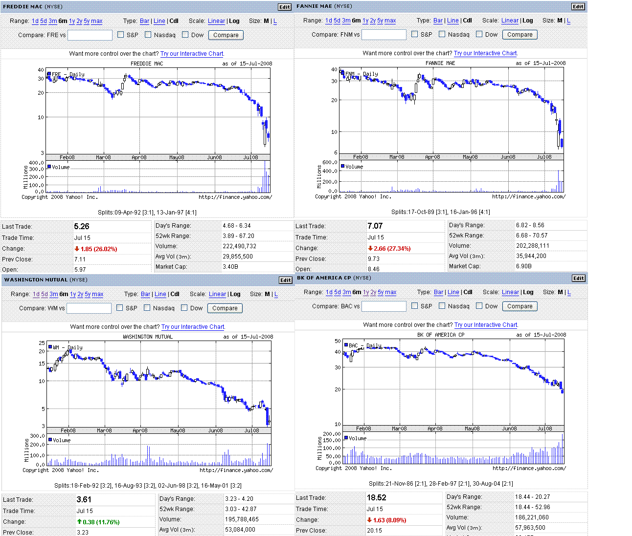 GSEの件は、現状を一発で好転させるウルトラCなど無いことを露呈してしまったのだと思います。住宅市場、個人消費、企業活動、これら実体経済を地道に良くしていかないと、今騒がれている金融機関の損失の問題も解決しないのです。