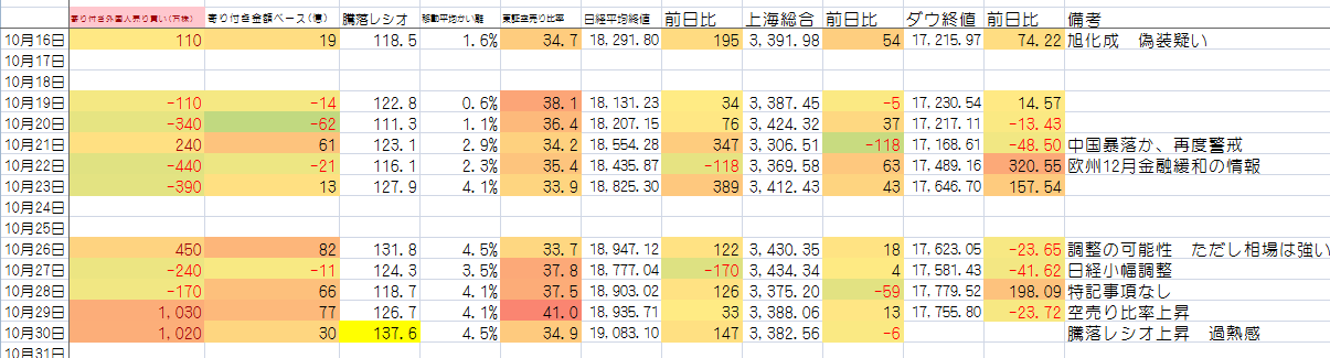 空売り比率下落 騰落レシオ上昇