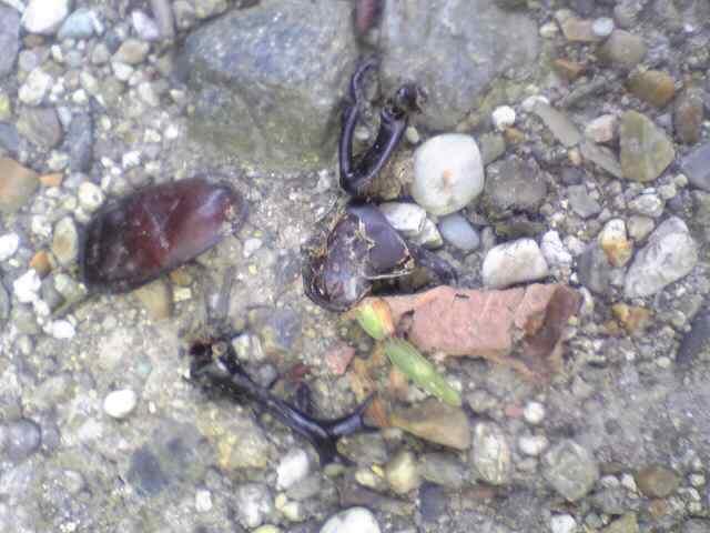 カラスに食べられてカブトムシがバラバラです。美味しいとこだけ食べて後はアリに任せるのでしょう。後1日もすればなくなります。自然は残酷ですが、これも生きるためです。鯨もカンガルーも牛も同じですけれど、なぜ鯨はいけないか?日本人の主張が少なすぎる。