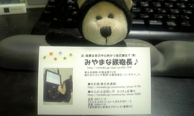 >でも、名刺を用意しておくってのはいいアイデアですね!私の場合は「まつぴょん」じゃ恥ずかしくて配れませんが(>