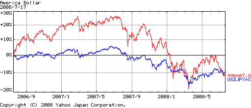 あと最近気になったんでドル円と日経平均の比較を、、