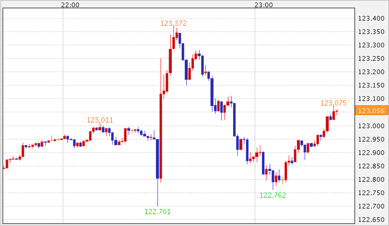 まぁ予想をわずかに上回るといったところでしょうか。前月分などが若干上方修正されていましたが、大幅な乖離がなければ値動きは限定的としていた通りになっています↓