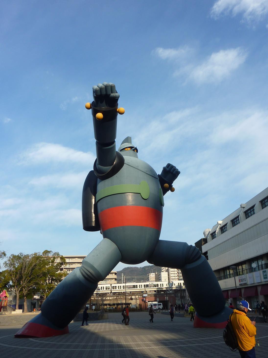 (写真:左) 横山光輝氏(神戸市出身)の「鉄人28号」原寸大モニュメント(18m)