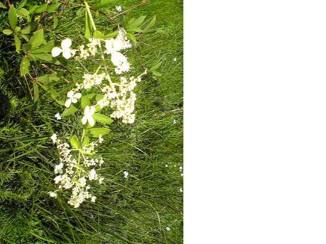 白い花、涼しさを感じます、右側ヒヤシンスにチョット似ていますね。