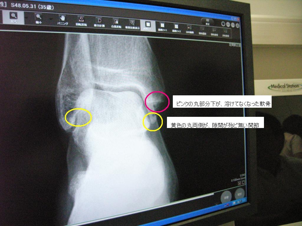 ショックに追い討ちをかけるように、足首の左右にある間接の隙間が殆んど無い状態であることを告げられる。