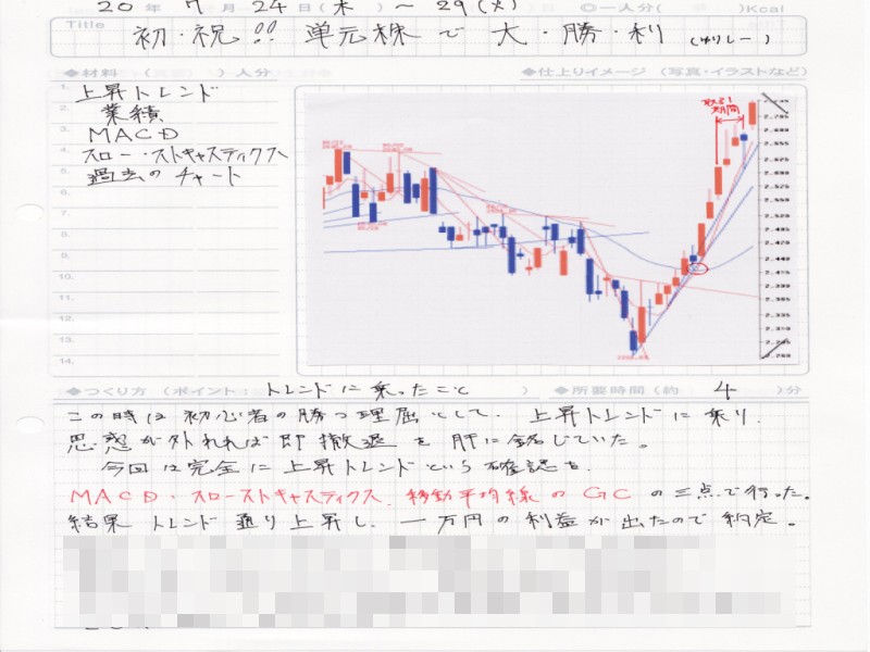 ミニチャートでは物足りないから株価日足とか色々をA4で印刷したのを追加でつけて出来上がり。