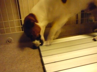 「フガ~」と鼻を鳴らしながら前足でザシザシと引っ掻き、端っこをかじってみたり。。このままだとバラバラに破壊される可能性大。