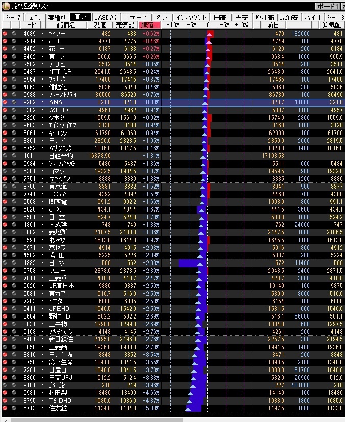 昨日、一昨日と売られた銘柄を中心に上昇するのではないかという予想をしている。