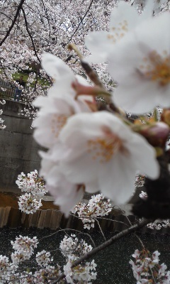 今日は石神井川沿いの桜並木を二人で見学して