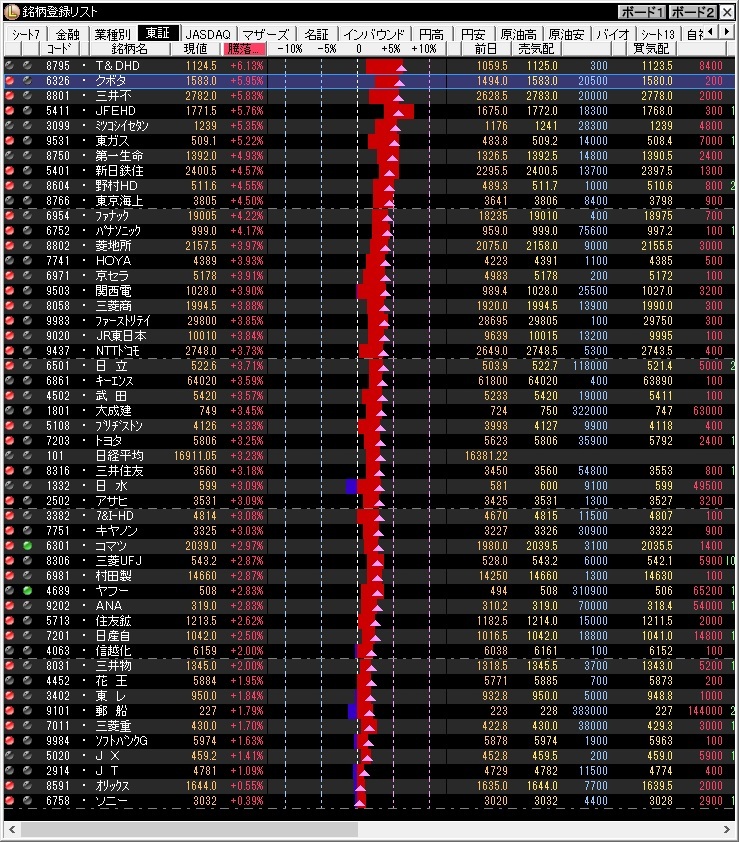 朝方は循環物色の可能性を見ていたが、前々日からの勢いがまだ続く一日だった。