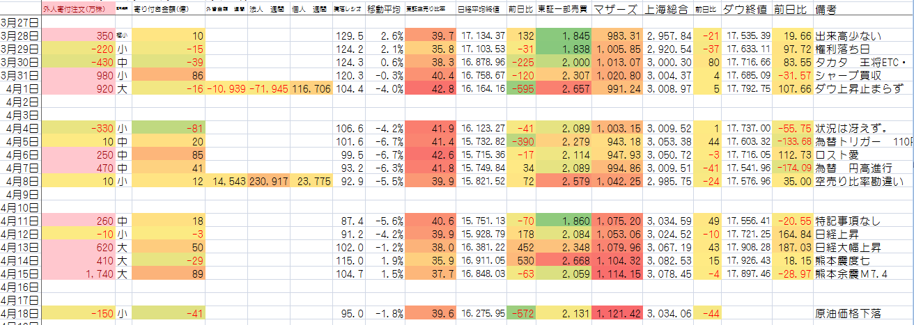 注目すべきは 週末の買い越しから一転売り越しに変わっている点。