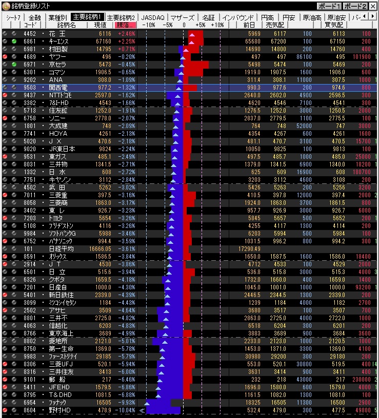 *別添え画像は前日の主要銘柄の株価変動を示す。