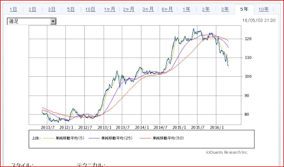 ・ドル円 5年チャート ・・踊り場と変化期を繰り返している。![]()