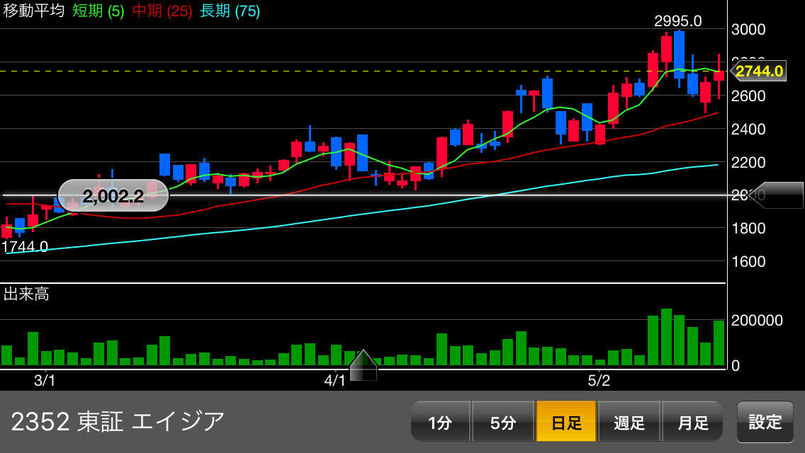 5/17株価2,388(+101)⇒終値2,300円上達成