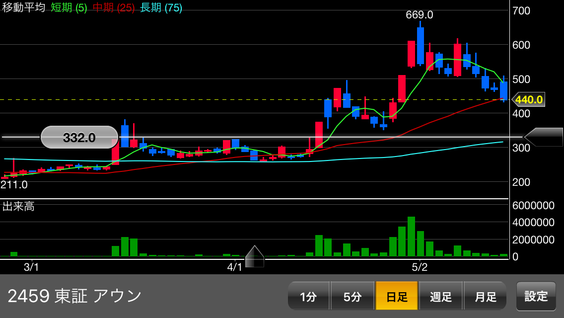 5/18株価440(-31)