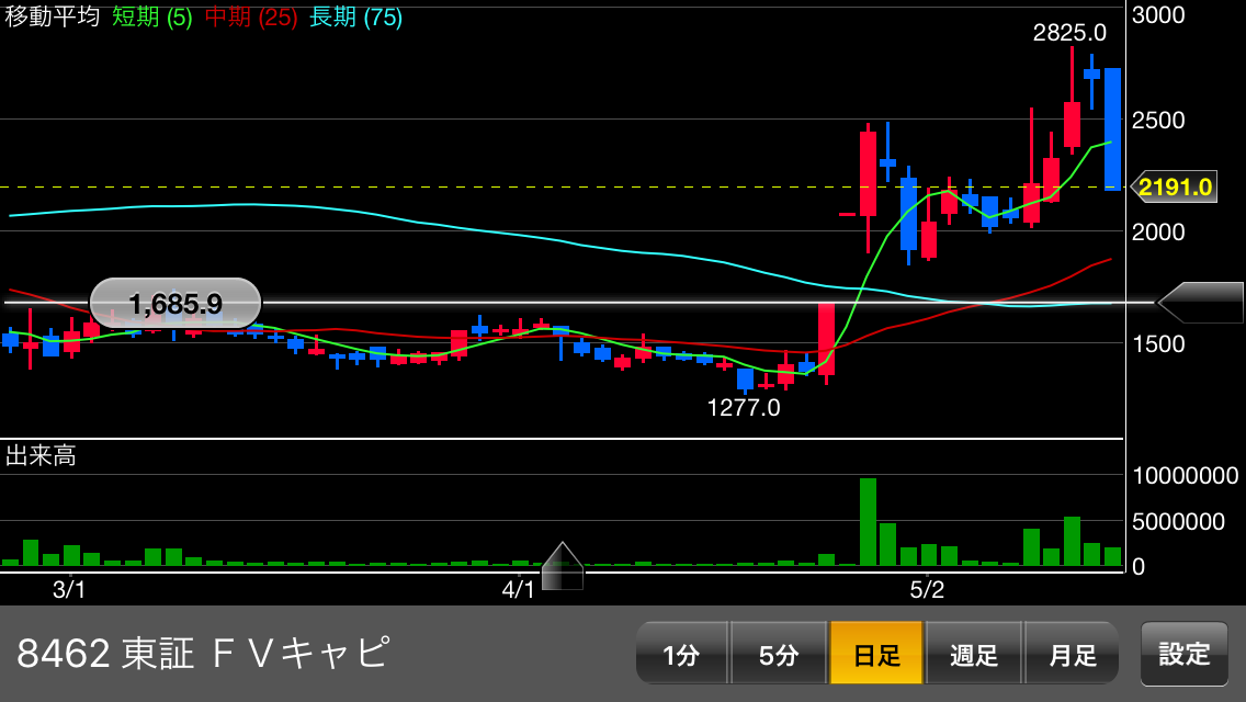 今日の新興株は↓すごかったですね。ストップ安付近で「FVC」を新規買い仕込んでみました。